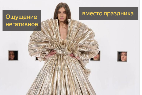 Не то, чтобы я сильно увлекаюсь модой, но порой хочется взглянуть на высокую моду, хочется атмосферы праздника, эффектных, ярких красочных нарядов или неброских цветовых гамм, но такой look, что запомнится и вызовет восхищение. Зимой, когда снег падает вторые сутки с малым перерывом, таких приятно- волнующий ощущений хочется особо сильно. Листая интернет увидела новость про моду. Боже мой, воскликнула я, но вовсе не от восхищения, а скорее от досады. Само платье впечатлило. Это я про то, что на фото. И остальные в таком же стиле смотрелись вполне оригинально: бисер и стеклярус. Но обратите внимание на людей в квадратных оконцах. Смотрится жутковато. Это только мне так кажется или вам тоже? Для меня жесть просто и никакого волшебного прикосновения к высокой моде. Если вы не поняли, то в не очень большое круглое помещение входит модель, а зрители по кругу располагаются и видят её вот через такое отверстие. Общее впечатление удручающее, может лучше окно круглым сделать, похоже на иллю