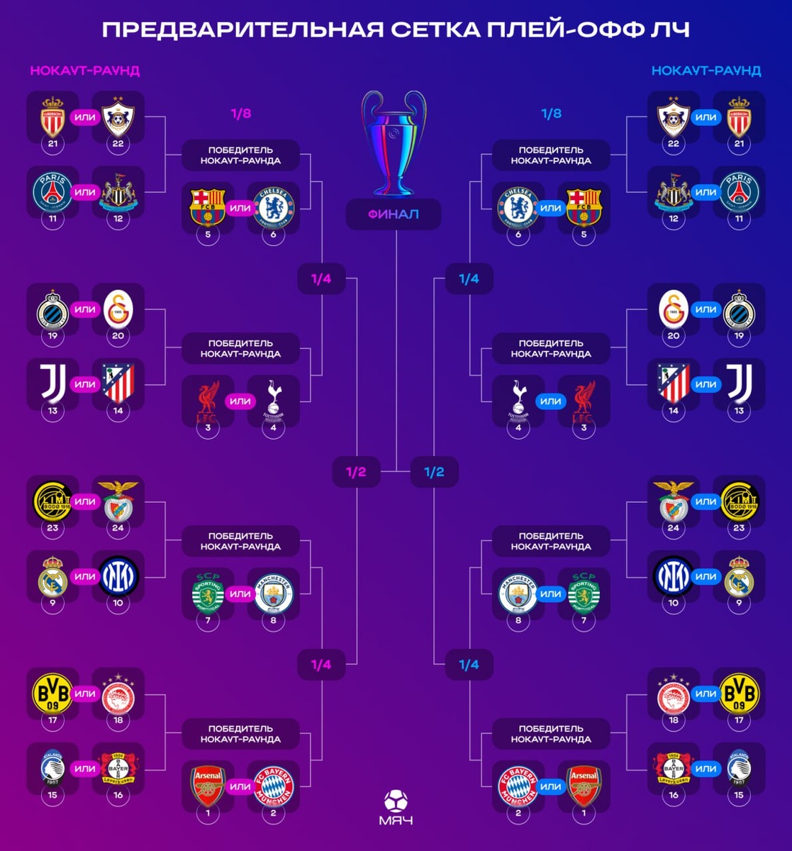 В 1/8 ЛЧ мы можем увидеть пары «Реал» vs «Ман Сити» и «ПСЖ» vs «Челси» / «Барселона».