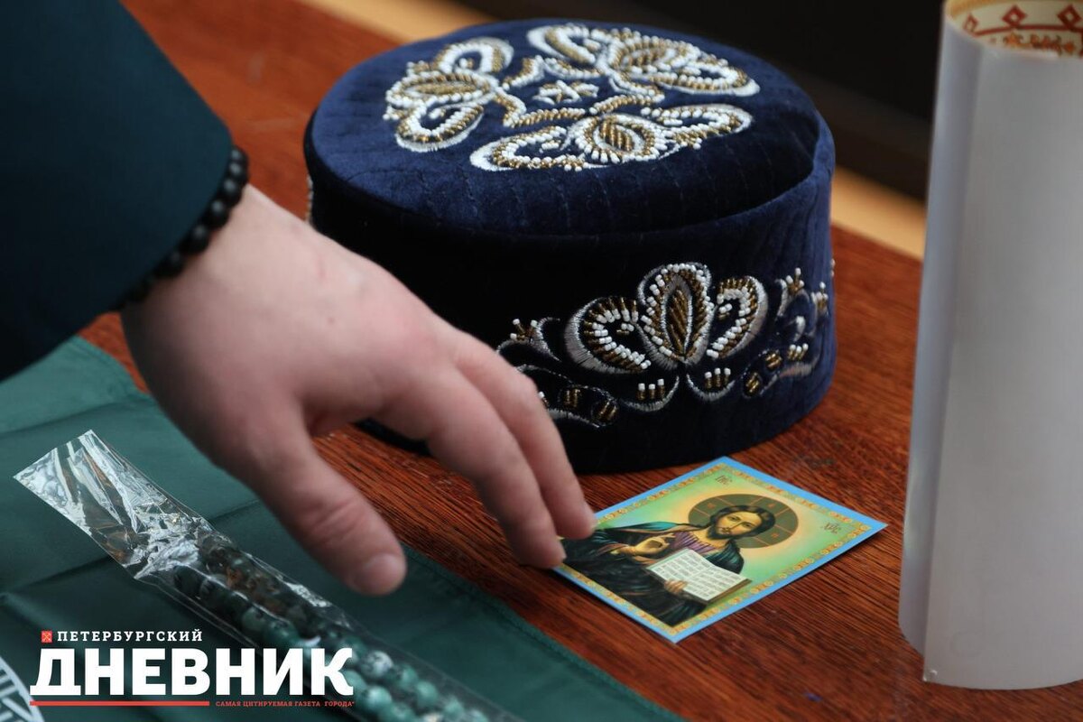 Фотограф «Петербургского дневника» запечатлел детали церемонии передачи в дар Государственному музею истории религии предметов из зоны СВО.