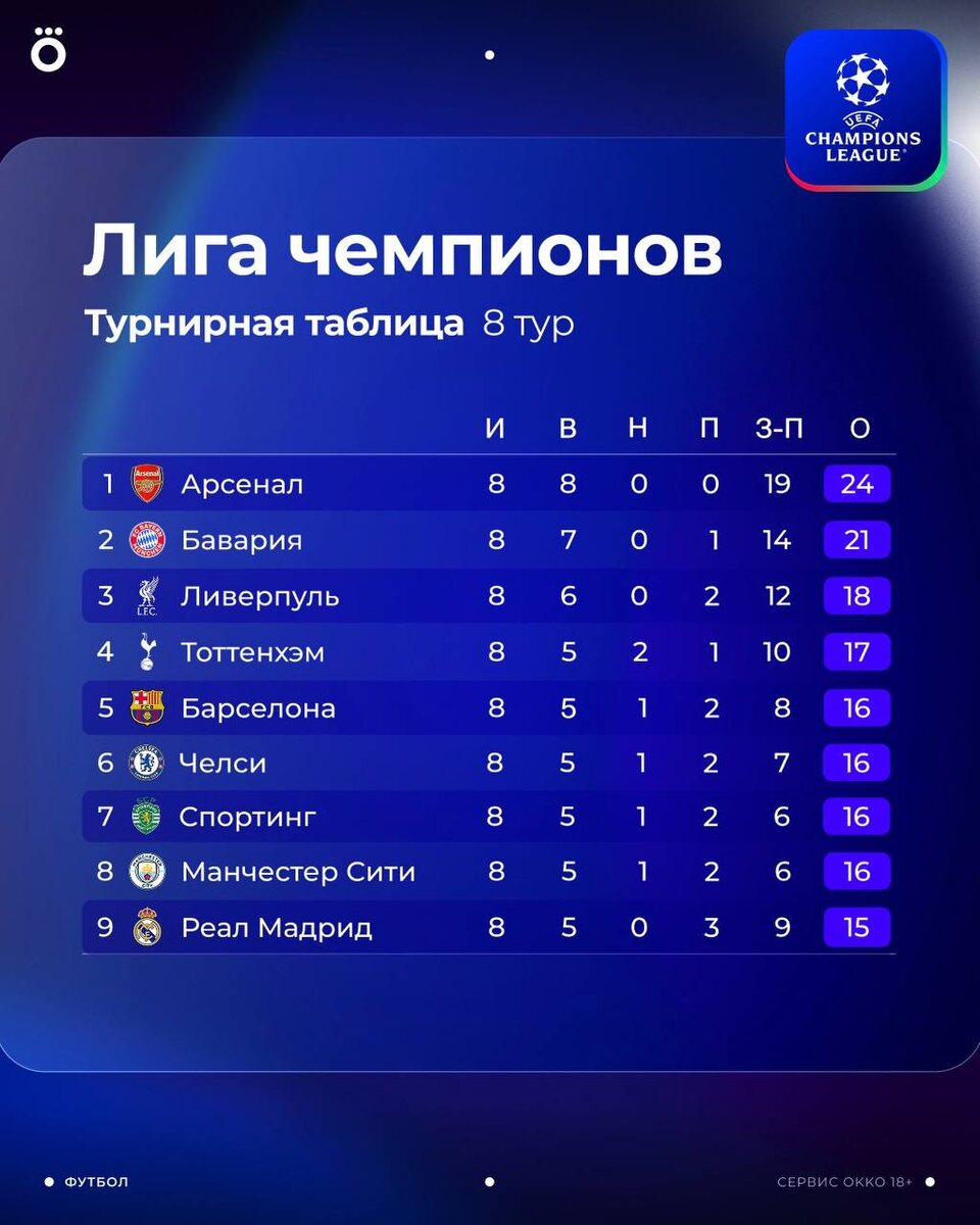 Общий этап Лиги чемпионов завершен. Фиксируем итоговую таблицу 🏆