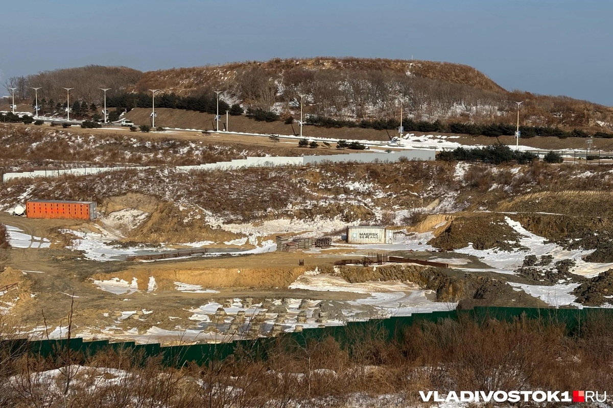 В 2023 году на остров Саперный пригнали технику и рабочих, но стройка быстро заглохла из-за того, что гендиректора компании-подрядчика «Приморстрой» отправили в СИЗО. Объект передали организации «СМУ 882», и с того момента работа почти не двигалась. Корреспондент @vladivostok1 снова посетил стройку, чтобы посмотреть, появилось ли здесь что-то новое или участок так и остался полузаброшенным. Как и ожидалось, на месте ничего не изменилось, и только зима немного разнообразила участок: площадку немного занесло снегом, а вода возле свай покрылась ледяной коркой. На основной территории не оказалось ни одного рабочего и даже строительной техники, но признаки жизни нашлись: немного поодаль стояли двое мужчин, а также экскаватор, разрывший проезд к комплексу. На пустыре ближе к морю произошли незначительные изменения: добавились материалы. Пустят ли их в работу — пока неясно. Интересно, что у проекта до сих пор есть рабочий сайт, на котором опубликованы яркие 3D-модели предполагаемых объек