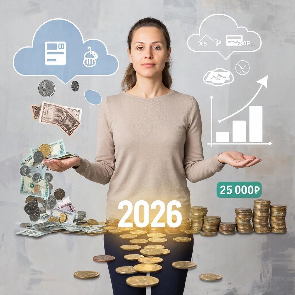 У меня ж помимо обычных расходов ещё дарение комнаты было - нотариус, Росреестр. Дебет с кредитом едва свела, и помогло то, что формирую пассивный доход. Я поставила цель на 2026 год - сформировать пассивный ежемесячный денежный поток в 25 тысяч рублей (минимум), 35 (базовая цель).