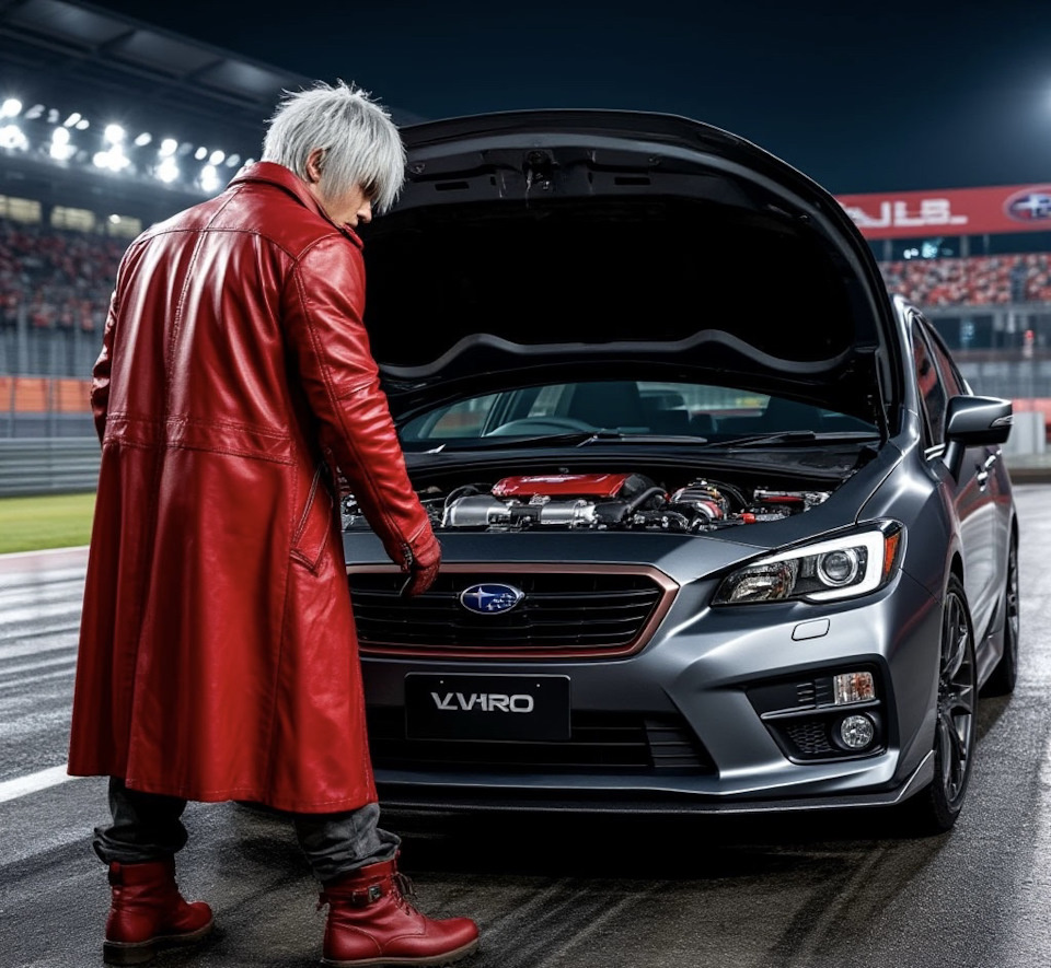 -Под капотом распорка с надписью STI ;