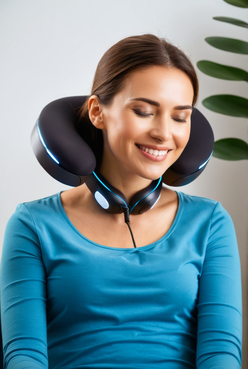 - Массажный воротник: Специализированный электромассажер для плеч и шеи. Его U-образная форма обеспечивает плотный контакт и глубокую проработку трапеции, что незаменимо для сидячей работы в офисе.