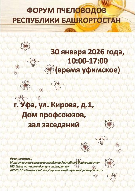 ❗️Уже завтра 30 января в Уфе состоится Форум пчеловодов Республики Башкортостан