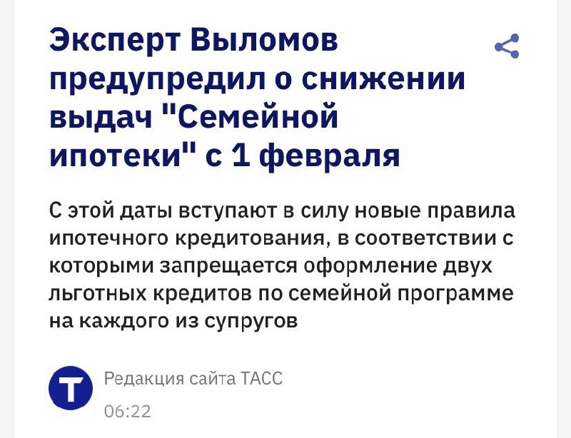 π₯ ΠΠΊΡΠΏΠ΅ΡΡ ΠΏΡΠΎΠ³Π½ΠΎΠ·ΠΈΡΡΠ΅Ρ Π²ΠΎΠ·ΠΌΠΎΠΆΠ½ΠΎΠ΅ ΡΠ½ΠΈΠΆΠ΅Π½ΠΈΠ΅ ΠΎΠ±ΡΡΠΌΠΎΠ² Π²ΡΠ΄Π°ΡΠΈ Β«Π‘Π΅ΠΌΠ΅ΠΉΠ½ΠΎΠΉ ΠΈΠΏΠΎΡΠ΅ΠΊΠΈΒ» Π½Π° 10β12% Π² ΠΏΠ΅ΡΠ²ΠΎΠΌ ΠΏΠΎΠ»ΡΠ³ΠΎΠ΄ΠΈΠΈ 2026 Π³ΠΎΠ΄Π° ΠΏΠΎΡΠ»Π΅ ΡΠΆΠ΅ΡΡΠΎΡΠ΅Π½ΠΈΡ