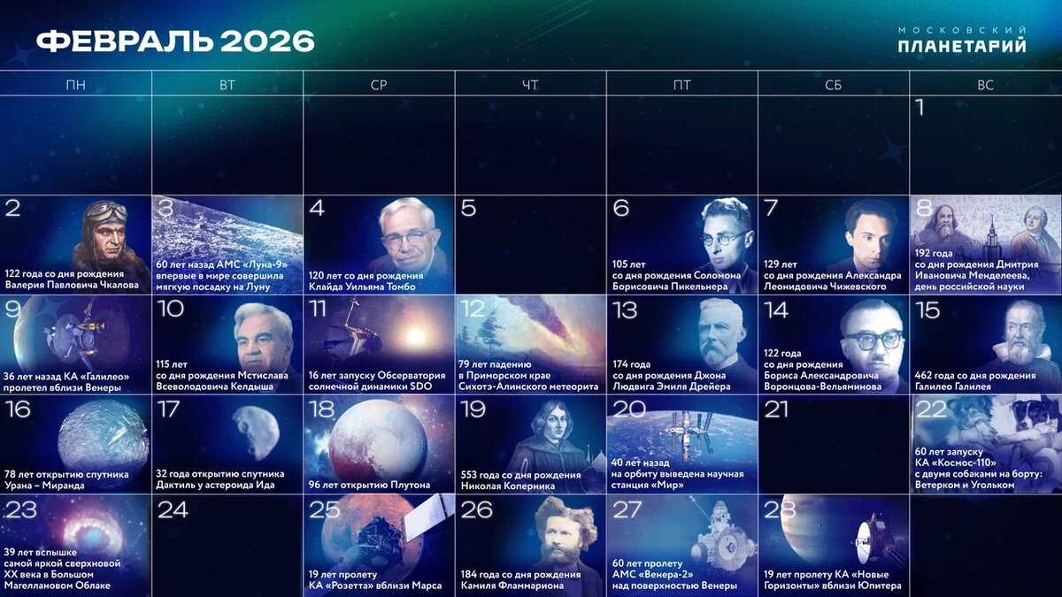 Избранные даты и события февраля 2026 года в астрономии и космонавтике: