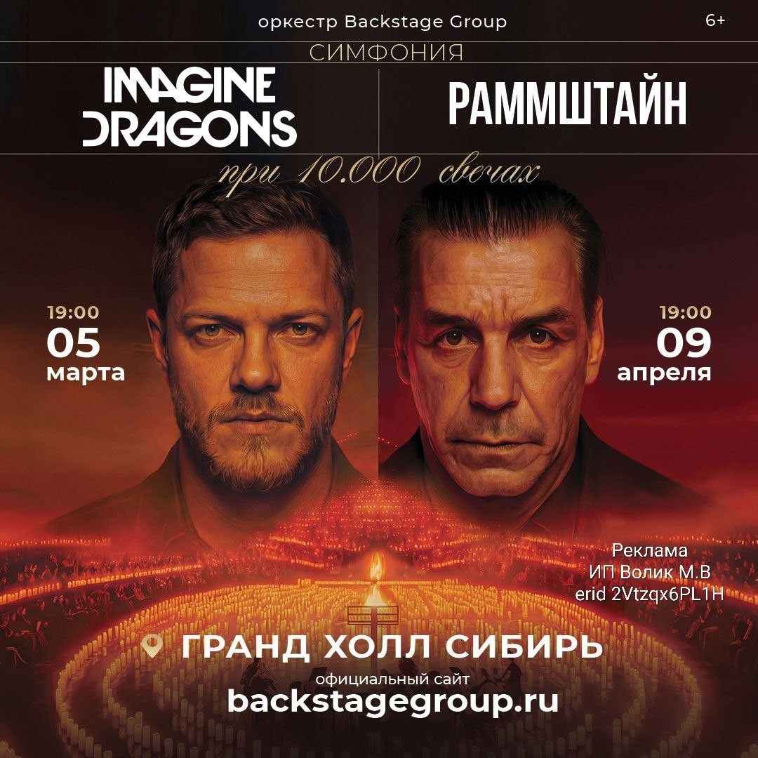 ! 🔥 5 МАРТА | СИМФОНИЯ IMAGINE DRAGONS Премьера! Гимны «Believer» и «Radioactive» в мощи живого оркестра. 🎫 БИЛЕТЫ: https://backstagegroup.ru/events/3621116 🕯️ 9 АПРЕЛЯ | СИМФОНИЯ RAMMSTEIN ПРИ СВЕЧАХ Огненные хиты «Du hast», «Sonne» в уникальной атмосфере. 🎫 БИЛЕТЫ: https://backstagegroup.ru/events/3621116 Организатор — @backstagegroup24 ВАЖНО: Мы понимаем ваше недоверие после отмен других концертов. Backstage Group гарантирует: ✅ Концерты состоятся в заявленные даты. ✅ При форс-мажоре — полный и быстрый возврат. Покупайте билеты с уверенностью. Это будет мощно!