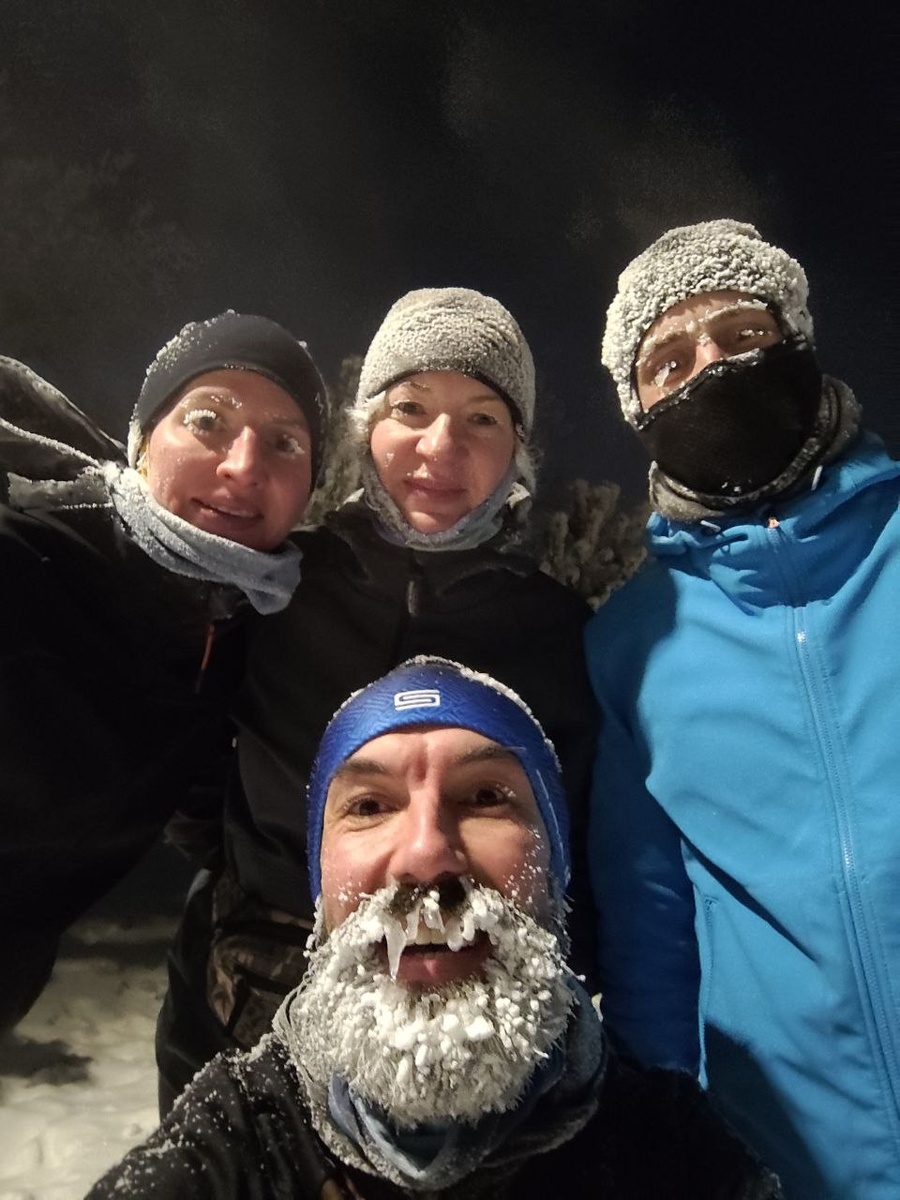 Внезапно получилась небольшая длительная с элементами фартлека 😁 Мороз для нас по-прежнему не испытание воли, а средство для создания трендовых зимних ресничек и бороды :)