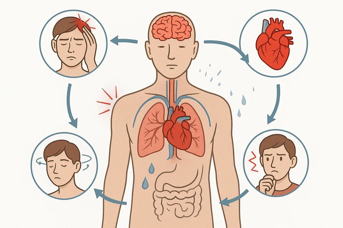 Вы когда-нибудь чувствовали, как сердце вдруг начинает бешено колотиться без причины? Или вставали утром с ощущением, будто провели ночь в беге — а ведь даже не двигались? А может, вас то бросает в жар, то в холод, кружится голова при резком вставании, немеют пальцы, давит в груди — но все анализы «в норме»?