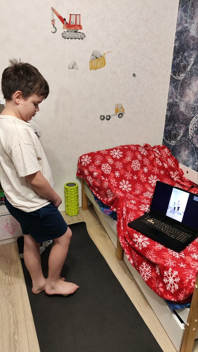Покажу вам, как Матвей занимается по моим урокам. На видео мы с Маргошей и блок работы со стопой.