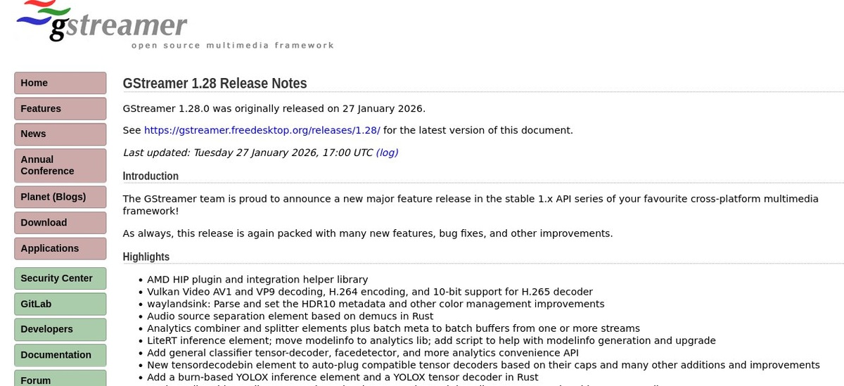 📝 Кратко: 27 января 2026 года состоялся релиз открытого мультимедийного фреймворка GStreamer 1.28.0. В решение входит кроссплатформенный набор компонентов для создания широкого спектра мультимедиа приложений, от медиаплееров и конвертеров аудио/видео файлов, до VoIP‑приложений и систем потокового вещания. Читать далее 🔗 Читать оригинальную статью (ссылка) 📊 Источник: Habr ⏰ Время: 29.01.2026 01:59 📱 Другие каналы: 🪙 ВКрипту | 🎮 ВИгрухи | 🏎️ ВТачки | ✈️ ВТравелу #gadgets #гаджеты #технологии 💪 Станьте участником: Хотите узнать, как безопасно увеличить криптоактивы без лишнего стресса? Кликните и получите проверенные советы от SOCPAY crypto air. | InsideAds Бесплатные подписчики