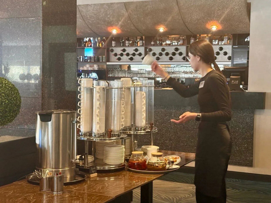 Первое предприятие сферы туризма в Хабаровском крае повысит свою эффективность в рамках федерального проекта «Производительность труда» нацпроекта «Эффективная и конкурентная экономика». Стать его участником решила одна из ведущих гостиниц Хабаровска - «Интурист». Оптимизация начнется с работы ресторана. Ежедневно заведение обслуживает в среднем 230 посетителей, а в пиковый сезон эта цифра возрастает до 600 человек. Курировать проект будут эксперты Регионального центра компетенций. Как пояснила директор ресторана Виолетта Шапоренко, на участке ресторана предварительно выявлены две основные проблемы. Во-первых, перепроизводство – несмотря на необходимость поддерживать стабильный ассортимент в течение всего времени работы шведского стола (с 7:00 до 10:30), к завершению завтрака остается излишек готовой продукции, что ведет к потерям. Во-вторых, в ресторане отмечено излишнее перемещение персонала, то есть необходимо более рационально организовать логистику сотрудников. Уже в ближайшее вре