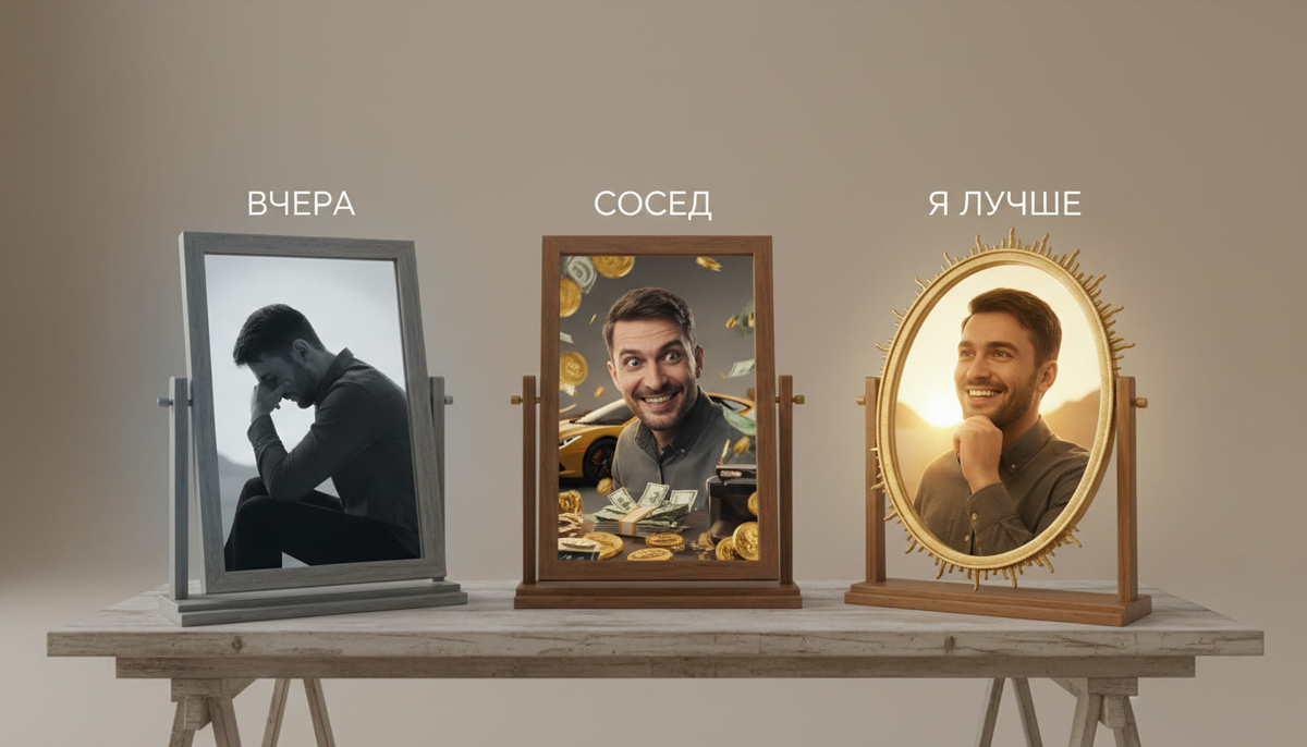 Слышал выражение: "Сравнивай себя не с другими, а с собой вчерашним"? Эта фраза звучит красиво. Но она опасно неполная.