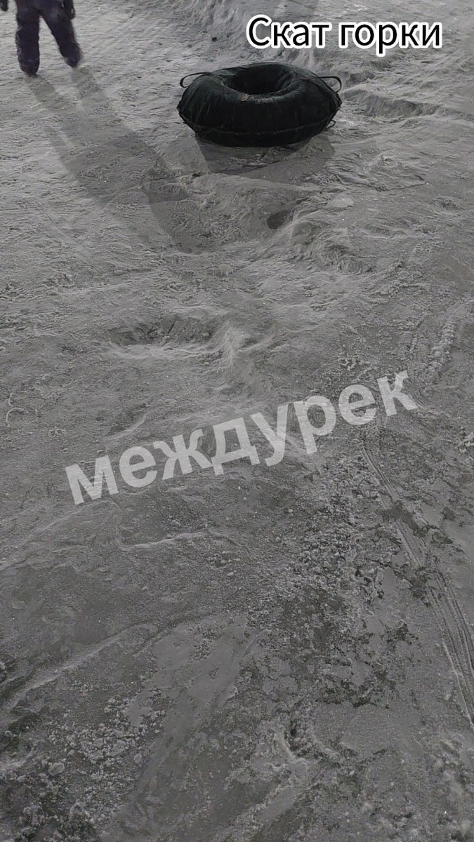 ». Недавно трактор чистил территорию, но, к сожалению, повредил ледовую горку — теперь её покрытие разбито, и катание стало невозможным. При этом сама площадь под слоем снега полностью покрыта льдом, что крайне опасно. Прохожие постоянно падают, рискуя получить травмы. Была хорошая горка, которая дарила радость, а теперь она испорчена, а вся территория превратилась в каток. Убедительно просим принять срочные меры по восстановлению горки и обработке площади противогололедными средствами.» от подписчика