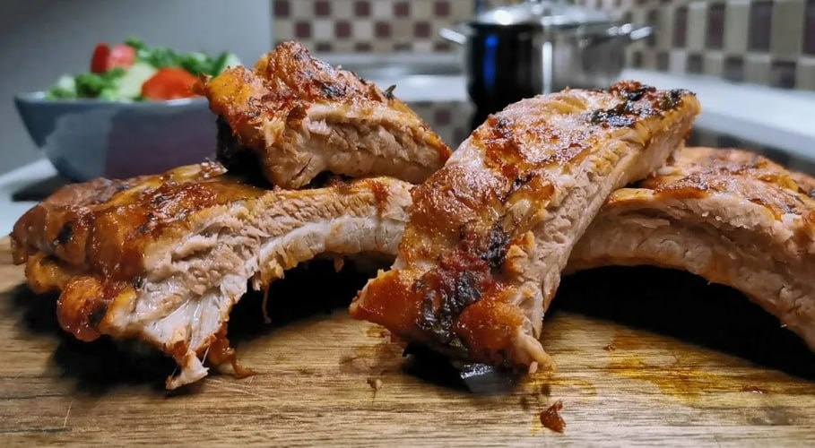 ! Свиные рёбрышки в духовке с мёдом и соевым соусом (запечённые, нежные) 🤩Свиные рёбрышки — 800 г–1 кг 🤩Соевый соус — 3 ст. ложки 🤩Мёд — 2 ст. ложки 🤩Чеснок — 3–4 зубчика (измельчить) 🤩Паприка сладкая — 1 ч. ложка 🤩Молотый чёрный перец — по вкусу 🤩Соль — по вкусу 🤩Растительное масло — 1 ст. ложка 1. Промойте и обсушите рёбрышки. При необходимости разрежьте на порционные кусочки. 2. В миске смешайте соевый соус, мёд, чеснок, паприку, перец, соль и масло. 3. Замаринуйте рёбрышки в этом соусе минимум на 1 час (лучше — 3–4 часа или на ночь в холодильнике). 4. Разогрейте духовку до 180 °C. 5. Выложите рёбрышки на пергамент или в форму для запекания. Полейте оставшимся маринадом. 6. Запекайте 40–50 минут, перевернув один раз в середине. За 10 минут до конца можно включить гриль, чтобы образовалась корочка. 😃На гарнир приготовьте брокколи - она тоже наверху пирамиды. Приятного аппетита! #слегкапосолить