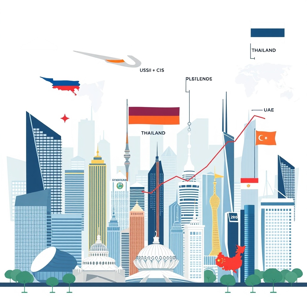 ** Согласно анализу консалтинговых компаний, в 2026 году выход на зарубежные рынки планируют около 20-30 российских брендов. Данная тенденция отражает переход от этапа инерционной экспансии к более взвешенному подходу, где экспорт рассматривается как инструмент отбора брендов, демонстрирующих устойчивую бизнес-модель, эффективную логистику и управляемость. В приоритете у российских компаний рынки СНГ, Индии, Таиланда, Китая и ОАЭ. В частности, сеть косметики и парфюмерии «Золотое яблоко» заявила о планах открытия офлайн-магазина и начала онлайн-продаж в Шанхае. В 2025 году Дубай (ОАЭ) стал ключевой площадкой для дебюта российских марок, приняв десять новых брендов. NF Group сообщает об открытии офиса в Дубае компанией Gloria Jeans. Примечательно, что в 2025 году наибольшая концентрация новых выходов пришлась на сегменты общественного питания и бьюти-индустрии, характеризующиеся высокой оборачиваемостью и минимальными рисками локализации. В сегментах fashion и товаров для дома набл