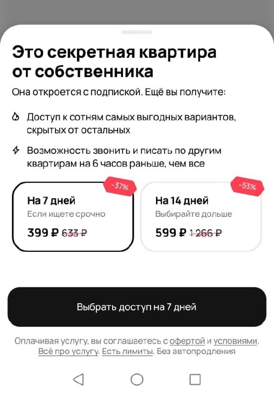 Теперь в первые часы после публикации объявления, посмотреть контакты можно только платно. Через 6 часов после публикации, контакты станут бесплатными.
