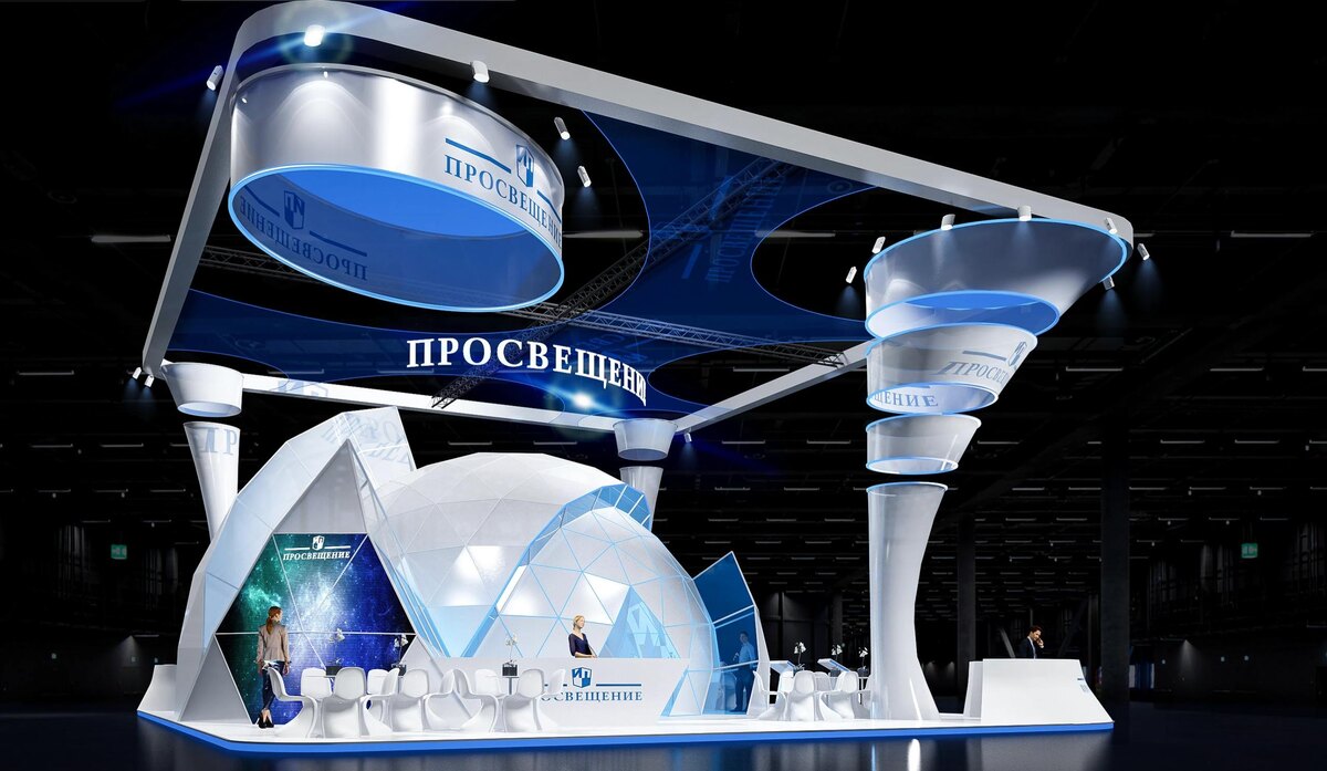 Массивная и в то же время воздушная концепция стенда для ГК Просвещение. Дизайнер - Виктория П.