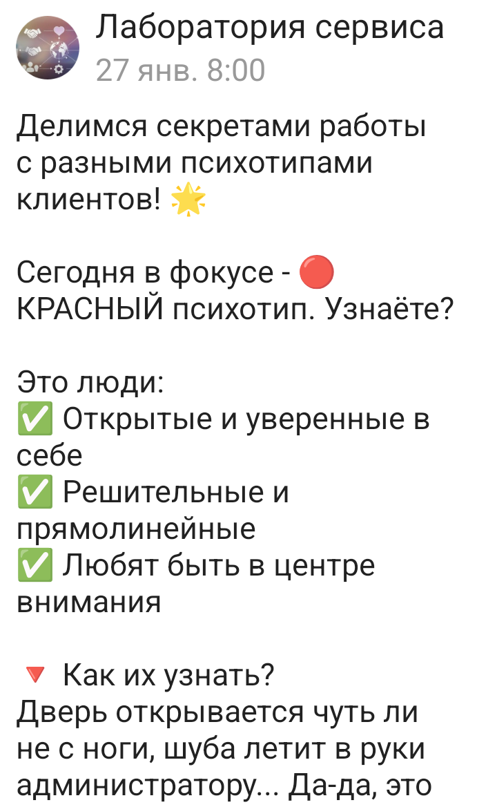Здравствуйте, наши дорогие читатели. Хотим вам показать статью нашего специалиста по сервису о секретах работы с клиентами красного психотипа. Ведь психотипы бывают разные.