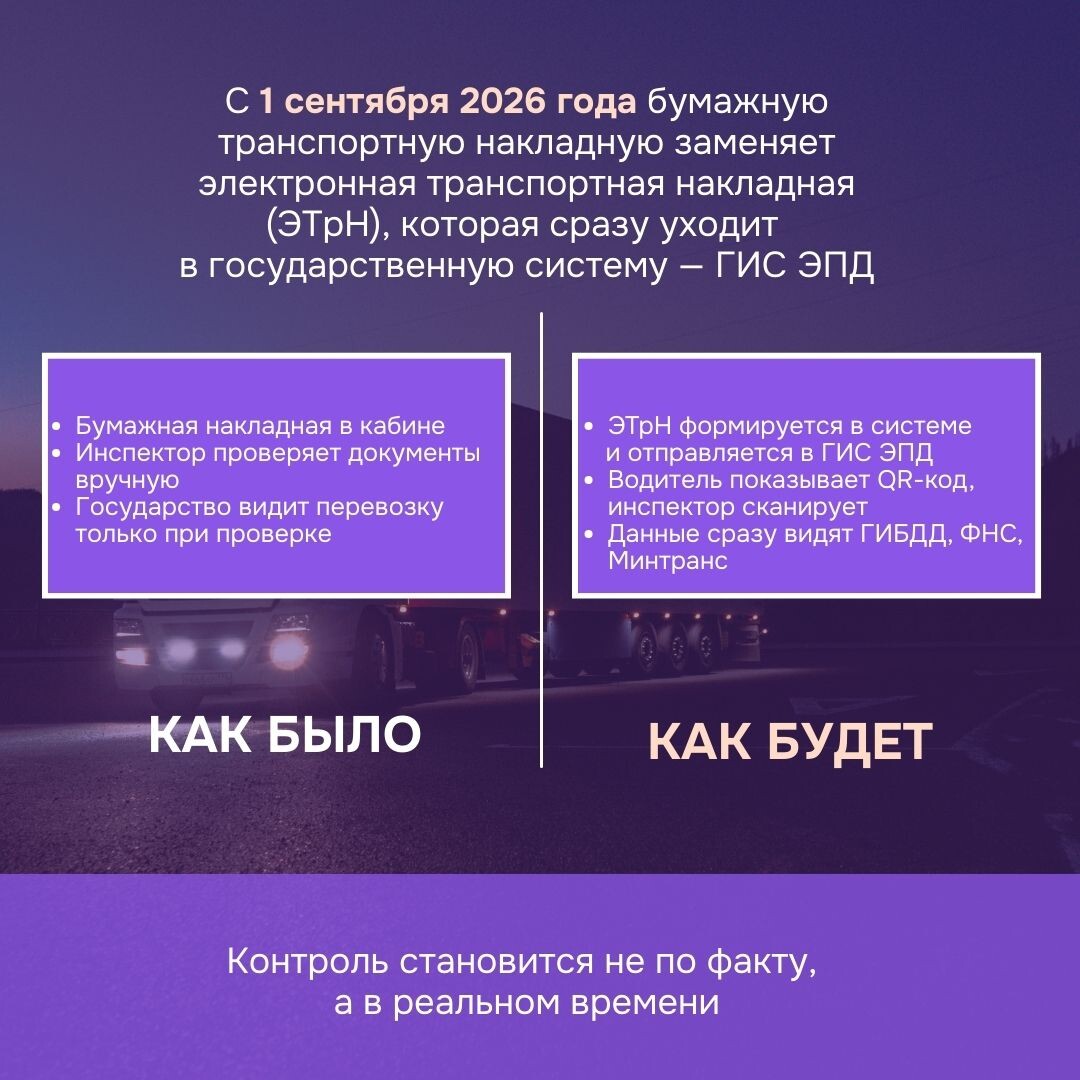 Если вы работаете с перевозками, этот вопрос скоро станет ключевым: «Мы готовы к ЭПД?» ЭПД — это электронные перевозочные документы. ➡️ С 1 сентября 2026 года бумажные транспортные накладные уйдут в прошлое. Их заменит электронная транспортная накладная (ЭТрН), которая сразу уходит в государственную систему — ГИС ЭПД. ❗️ Почему 2026 — это «точка невозврата». ✅ ЭТрН станет обязательной — без неё перевозка = штраф. Не ждите августа, чтобы начать готовиться к внедрению ЭПД. А пока мы готовим для вас полезные материалы по этой теме, следите за обновлениями. #АДАПТАзнает