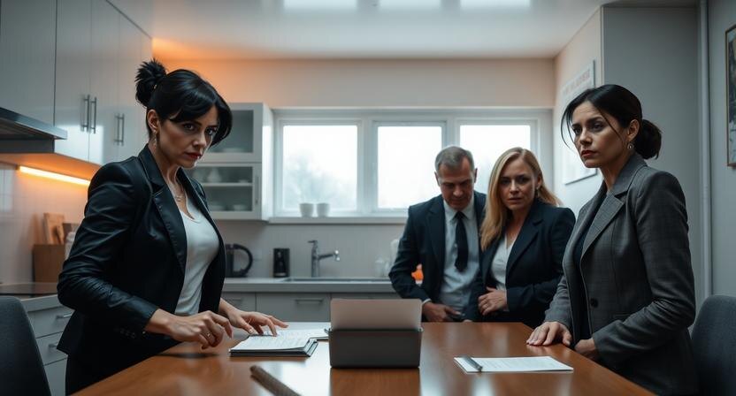 В день суда Антонина пришла заранее. В коридоре сидели люди с папками, с лицами «мы не хотели, но нас довели». Гриша появился в костюме, рядом — адвокат и Лариса. Лариса сидела чуть сбоку, как режиссёр, который не выходит на сцену, но следит, чтобы актёр не забыл текст.