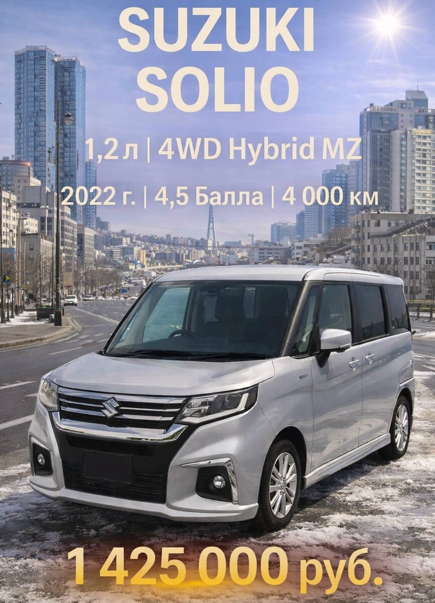 🇯🇵 SUZUKI SOLIO, 91 л.с., мягкий гибрид 1 841 000 йен цена на аукционе 💹 Дата торгов 19.12.2025, курс йены: 0.538 1 425 000 руб. цена под ключ во Владивостоке ❗ ОСТАВИТЬ ЗАЯВКУ НА РАСЧЕТ И ПОДБОР АВТО В TELEGRAM❗️ 📌 +7(951)010-52-52 📌 Сайт 📌 Левый руль из Китая 📌 WhatsApp (если ссылка не работает, используйте VPN, либо напишите нашему менеджеру в Telegram) Больше фото в комментариях, @noharaautos