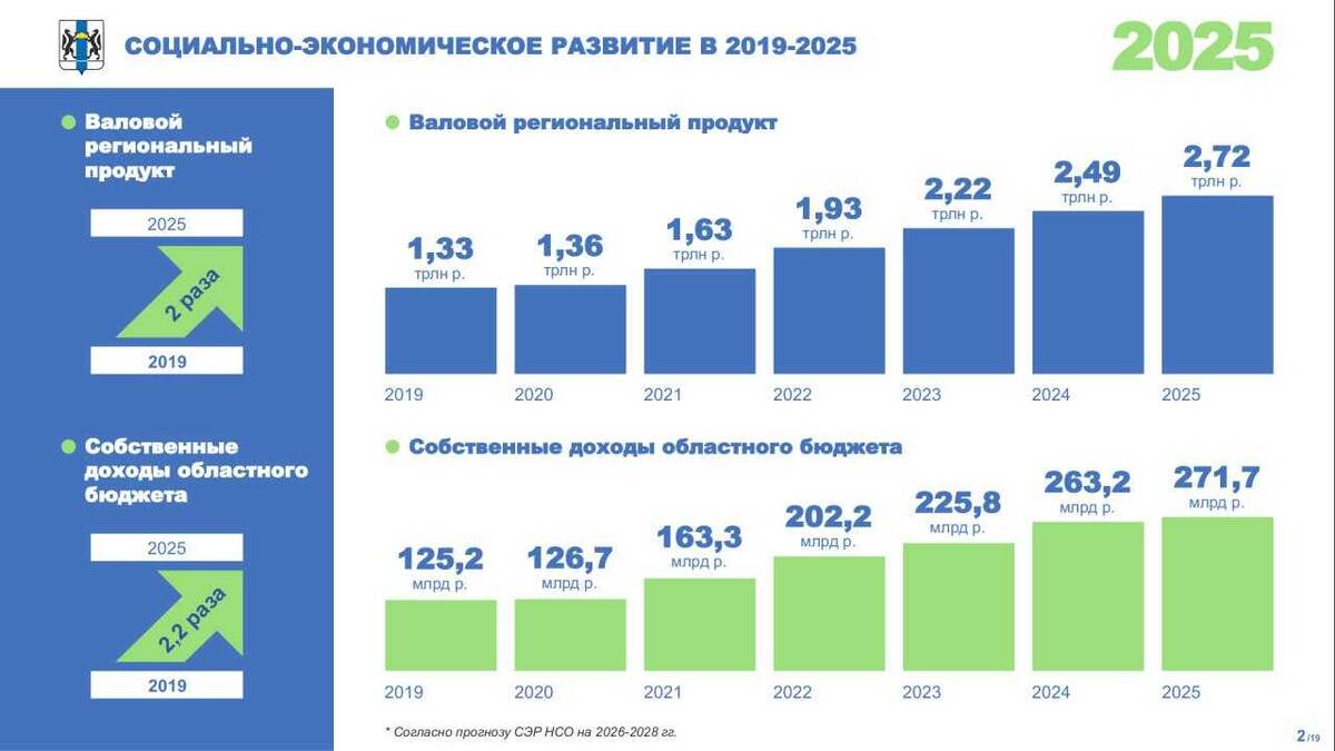 Глава региона принял участие в работе шестой сессии восьмого созыва Законодательного Собрания Новосибирской области. Андрей Травников в отчетном докладе отметил: в 2025 году акценты бюджетной политики были смещены в пользу завершения уже начатых проектов. Для Правительства Новосибирской области завершение всех строящихся объектов – вопрос принципиальный. Структурный приоритет был отдан выполнению социальных обязательств перед гражданами, содействию решению задач СВО и национальным проектам. В 2025 году по многим сферам сохранилась положительная динамика. Валовой региональный продукт области превысил 2 триллиона 723,5 миллиарда рублей (102 процента к уровню 2024 года). Индекс производства продукции сельского хозяйства в 2025 году составил 104 процента к 2024 году. Несмотря на сложнейшие погодные условия, аграрии собрали 3,3 миллиона тонн зерна в первоначально оприходованном весе. Гораздо выше была и урожайность зерновых и зернобобовых культур – 27,4 центнера с гектара. Для экономики рег