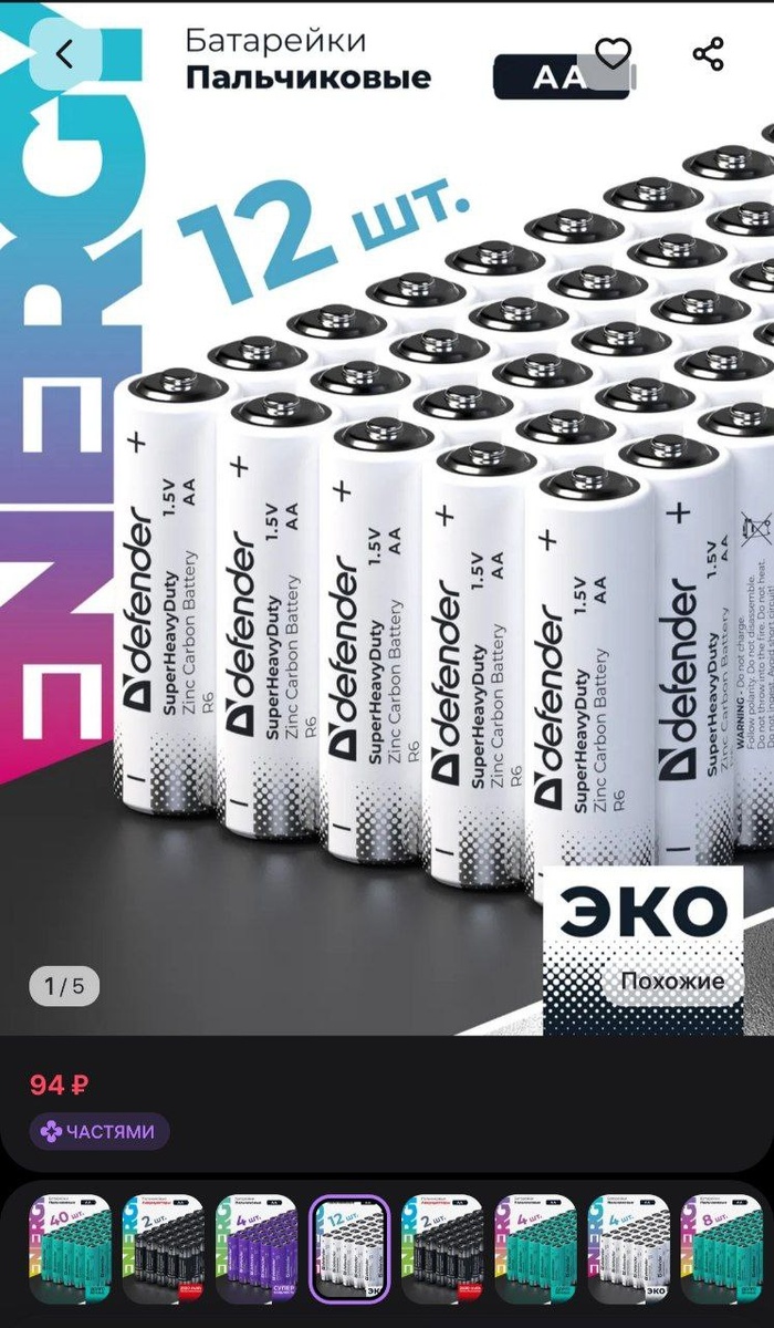 🔥🔥🔥Батарейки пальчиковые АА солевые 12 штук DEFENDER за 94₽
