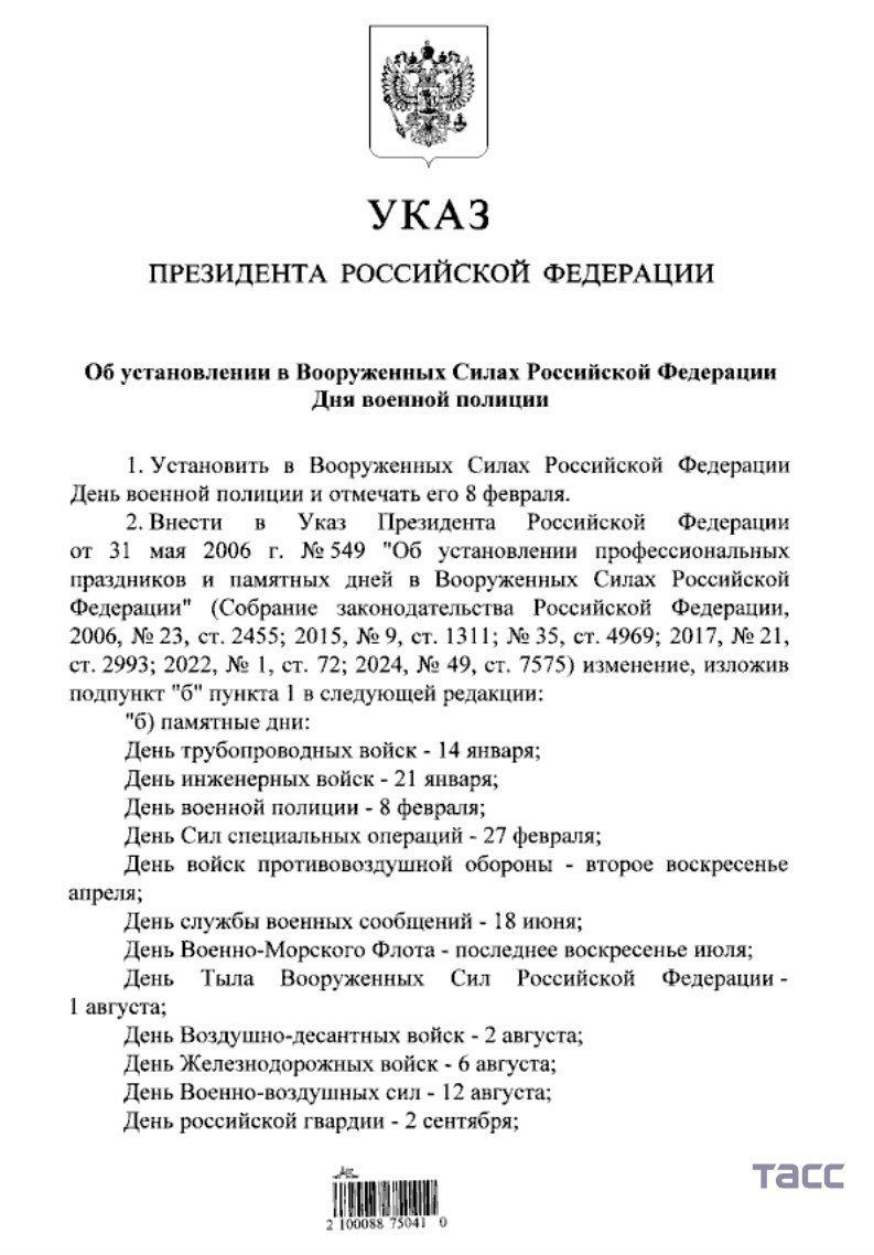 Соответствующий Указ вчера, 28 января, подписал Президент России Владимир Путин. Инициатором выступило Министерство обороны РФ. Праздник укрепит воинские традиции и станет знаком признания заслуг ветеранов и военнослужащих. Наш канал в MAX