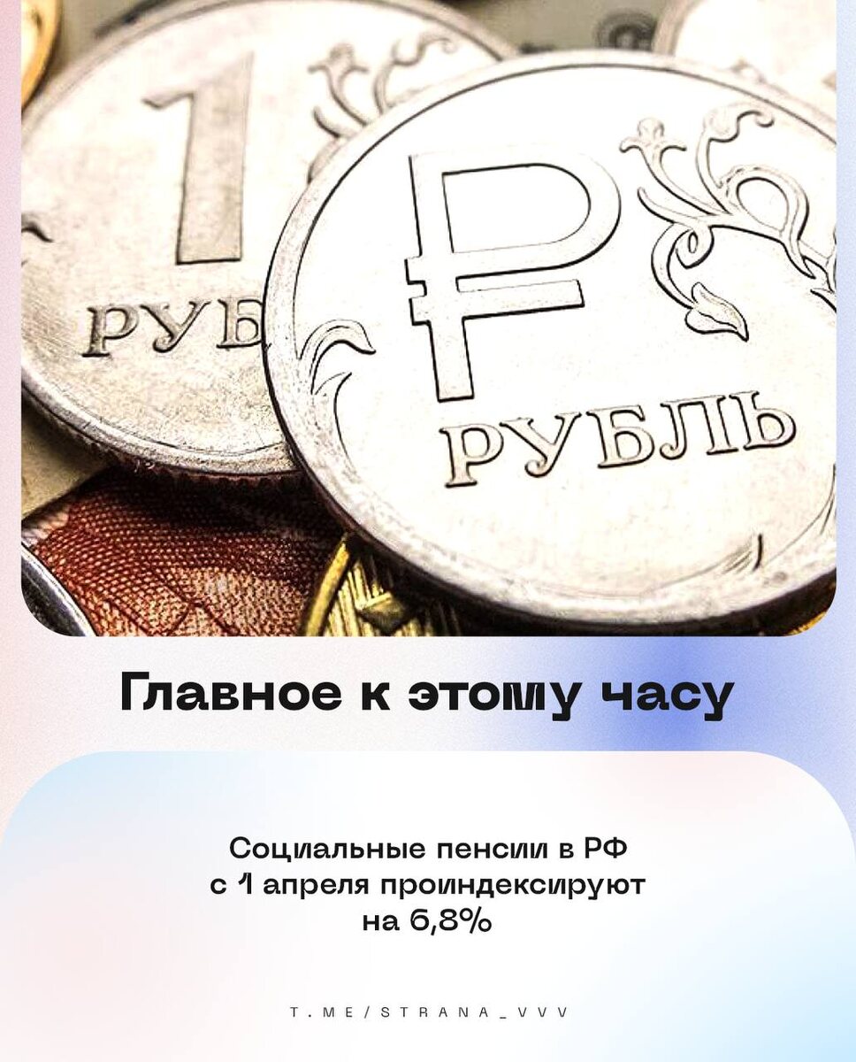 : 🔹Социальные пенсии в РФ с 1 апреля проиндексируют на 6,8%. 🔹Форматы «бакалавр» и «магистр» в России отменят с 1 сентября 2026 года, вместо них введут базовое и специализированное высшее образование. 🔹Максимальный размер пособия по уходу за ребенком с 1 февраля составит 83 тыс. рублей. 🔹Пенсионеры старше 80 лет начнут получать повышенную двойную надбавку с февраля — юрист Акатнова. 🔹Снегопад как чрезвычайная ситуация должен считаться уважительной причиной в случае опоздания на работу или учебу, эту норму следует закрепить в ТК РФ — член ОП РФ Владислав Гриб. 💰Курсы валют: доллар — 📉76,27; евро — 📈91,30; юань — 📉10,94. ✅ «В Стране» в MAX