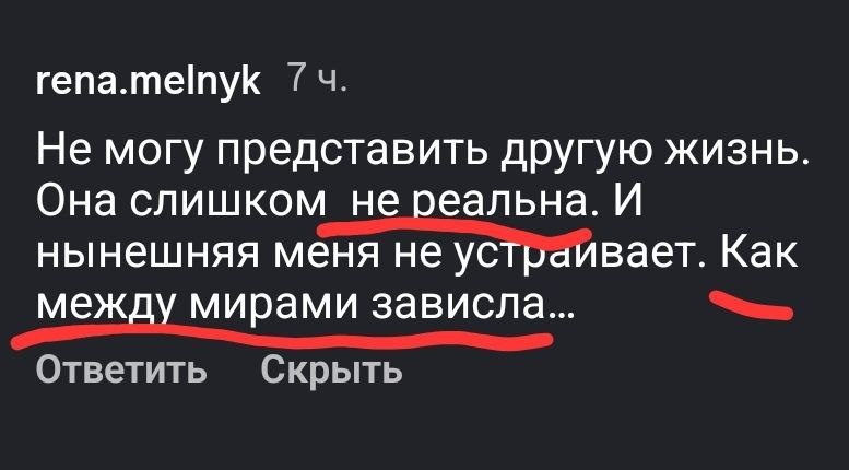 Это страшно - прожить эту единственную жизнь не так, как хочется. И есть только одна причина, почему люди зависают в старой несчастной жизни и не могут строить желаемую реальность. Сейчас надиктую свои мысли на эту тему... 👇👇👇