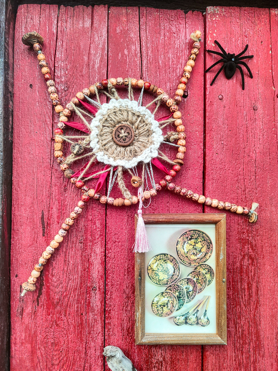 Начну свой рассказ с вот такого вот нового солнышка, которое радует меня. Некуда его уже вешать, но всё же я его смогла вместить и получилось веселое солнышко с ногами и с руками вверх.