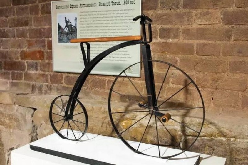 🔸Первым в мире двухколёсным велосипедом, оснащённым педальным приводом, считается конструкция, созданная Ефимом Михеевичем Артамоновым, крепостным мастером с Пожвинского завода, уроженцем Прикамья. 🔸Эта машина, собранная на Нижнетагильском заводе, представляла собой железную конструкцию, напоминающую двухколёсную тележку. Привод осуществлялся ногами через педали, установленные на оси переднего колеса. При этом переднее колесо было почти в три раза больше заднего. Оба колеса соединялись изогнутой металлической рамой. 🔸Конструкция была достаточно надёжной, чтобы мастер смог совершить на ней путешествие из родных мест на Урале до Санкт-Петербурга к коронации Александра I. Это путешествие, совершённое со средней скоростью около 10 км/ч, завершилось 27 сентября 1801 года. 🔸Изобретение произвело сильное впечатление на всех присутствующих, включая императора. В награду за своё творение Артамонов и всё его потомство были освобождены от крепостной зависимости. Чудо техники пополнило царс