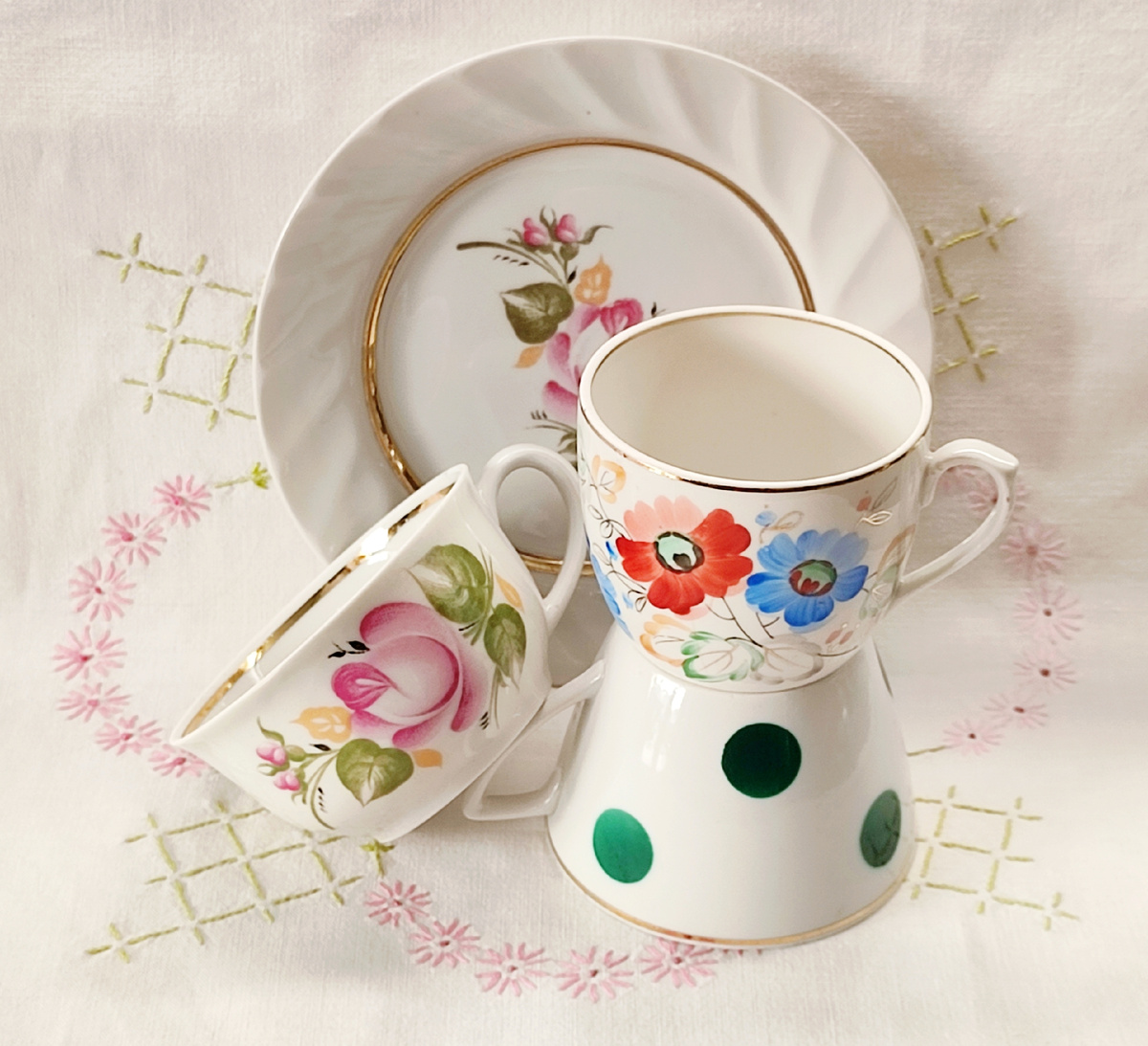 Чашка с розами была в подборе с блюдцем Хайтинским с такой же росписью, вообще родней выглядели, даже не земляками 😄