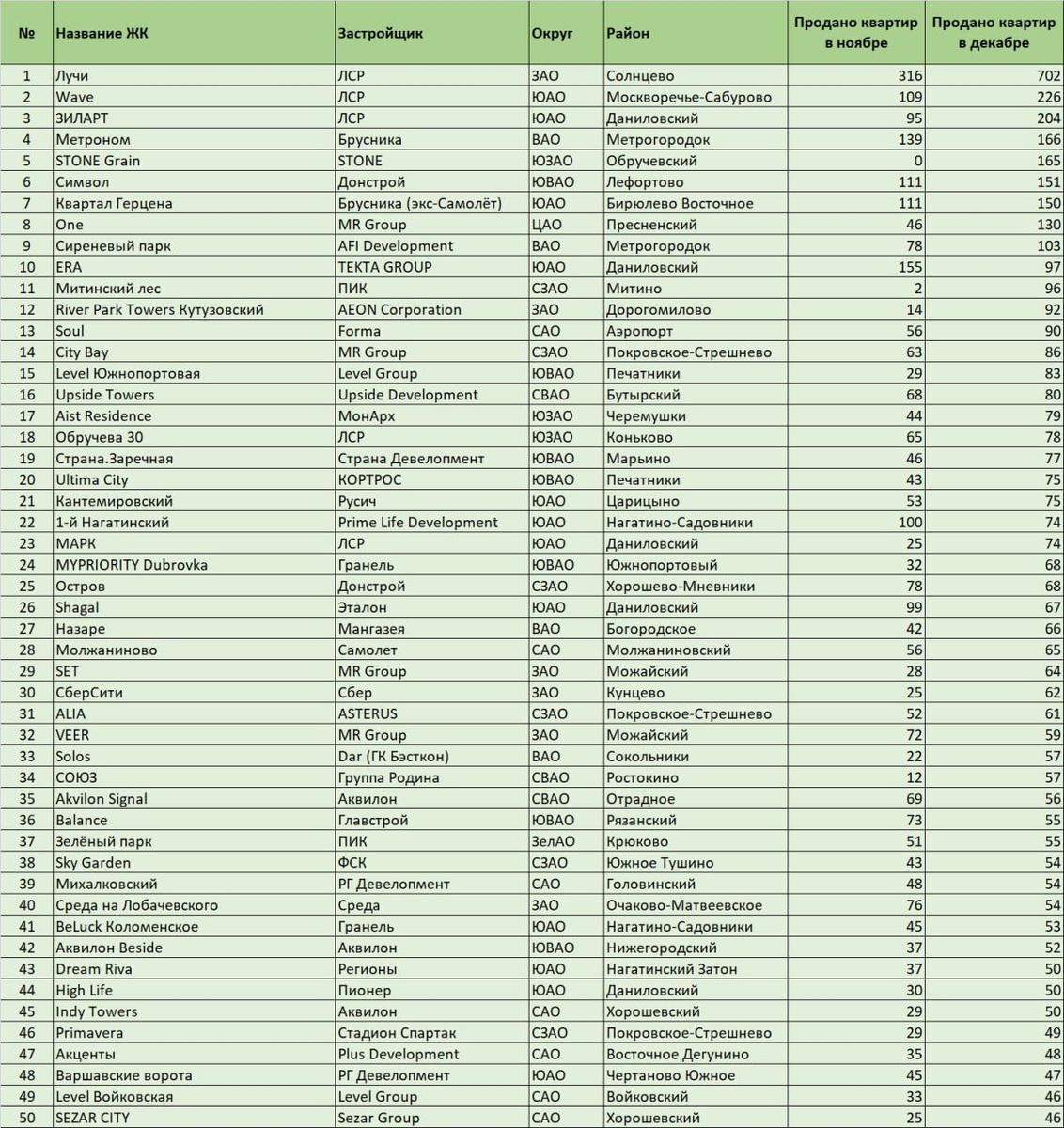 ΠΏΠΎ ΠΏΡΠΎΠ΄Π°ΠΆΠ°ΠΌ Π½ΠΎΠ²ΠΎΡΡΡΠΎΠ΅ΠΊ Π² ΡΡΠΎΠ»ΠΈΡΠ΅ Π·Π° Π΄Π΅ΠΊΠ°Π±ΡΡ 2025 Π³ΠΎΠ΄Π° (Π±Π΅Π· ΡΡΡΡΠ° ΠΠΎΠ²ΠΎΠΉ ΠΠΎΡΠΊΠ²Ρ). π ΠΠΈΠ΄Π΅Ρ β Ρ Π±ΠΎΠ»ΡΡΠΈΠΌ ΠΎΡΡΡΠ²ΠΎΠΌ: ΠΠ Β«ΠΡΡΠΈΒ» β 702 ΠΊΠ²Π°ΡΡΠΈΡΡ Π·Π° ΠΌΠ΅ΡΡΡ. ΠΡΠΎ Π½Π΅ ΠΏΡΠΎΡΡΠΎ ΡΠ΅ΠΊΠΎΡΠ΄ ΠΏΡΠΎΠ΅ΠΊΡΠ°, Π° ΠΎΠ΄ΠΈΠ½ ΠΈΠ· Π»ΡΡΡΠΈΡ