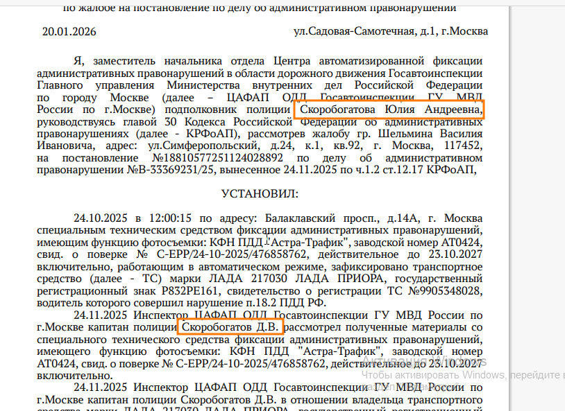 Семейный бизнес - крутая штука. Семейный бизнес чиновников, как мы знаем, поставлен на поток. Муж или жена там что-то ковыряются на госслужбе, а их спутник непременно талантливый и успешный бизнесмен. Так вот, про семейный бизнес. Разбираю одно дело и увидел двух офицеров с одной фамилией. Однофамильцы или муж и жена? Сразу как раз и вспомнилось про семейный бизнес. Правда, если он тут есть, то он не совсем типичный - просто работают вместе. Ну а что?! Разве камеры не бизнес? Камеры у нас в основном коммерческие. В целом, их назначение далеко от заявляемых благих целей, связанных с безопасностью дорожного движения - чаще сама организация дорожного движения (вот как в этом случае по этому делу) оставляет желать лучшего. Прикольно. Капитан полиции выносит постановления, а подполковник клепает решения. А, может, мама с сыном. Почему бы и нет. Я вот был маленький всегда приходил к маме на работу в поликлинику и помогал ей заполнять бумажки и она мне платила за это деньги. Статья, к