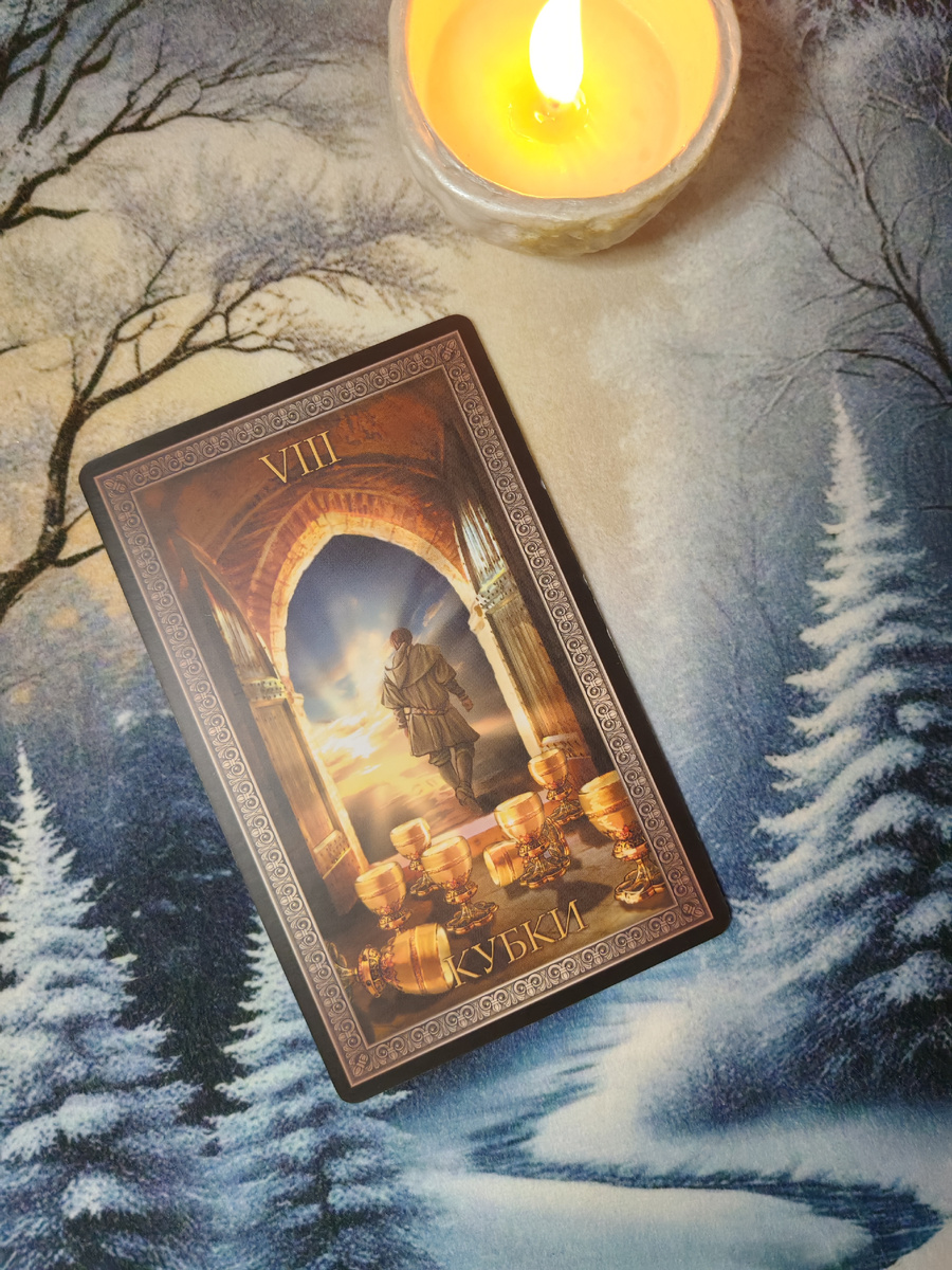 8 Кубков. Сегодня тот день, когда вам хочется отвернуться от мира и побыть в одиночестве. Ощущение, что ваш мир стал вам тесен, душа требует перемен, сменить хочется сменить одновременно работу, окружение, цвет волос, и даже сделать пересадку личности. Это начало долгого пути внутренних перемен, куда он приведёт? Пока это секрет, но сегодня хороший день, чтобы задуматься о духовной жизни, начать менять свой подход к бытовым вопросам, именно так происходит отработка кармы.