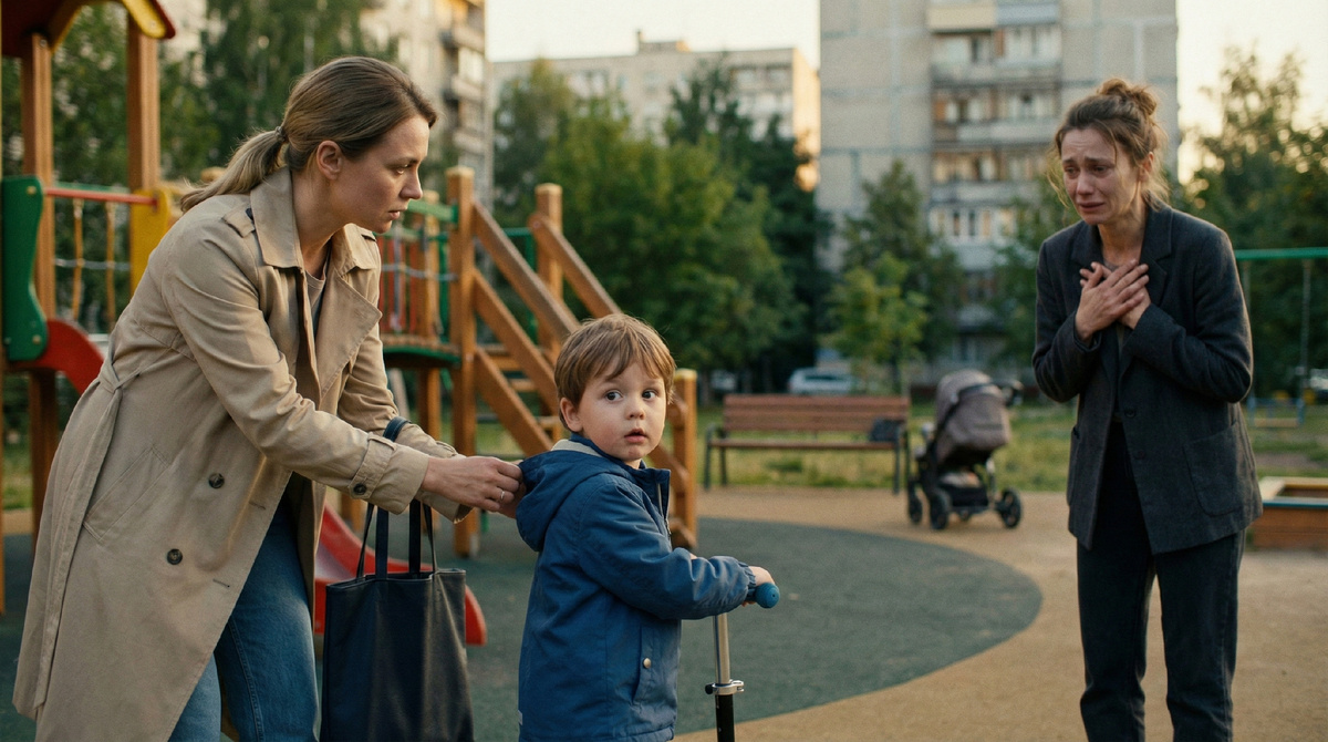 Женщина стояла у песочницы, не делая шага вперёд, но и не отступая. Тонкая куртка, не по сезону. Волосы собраны кое-как, будто она делала это в лифте или на ходу. И лицо — не красота и не уродство, а именно лицо человека, который давно не спал нормально и всё время держит себя руками.