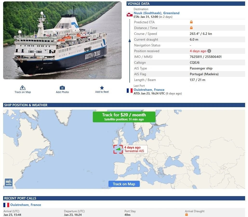 ». Корабль будет противостоять планам Трампа и станет казармой для датских и других военных, сообщила газета Bild со ссылкой на военные силы Дании. Шестипалубное круизное судно финской компании Kristina Cruises построили по заказу Советского Союза как морской автопассажирский паром класса «Дмитрий Шостакович». 17 апреля 1981 года его передали экипажу Дальневосточного морского пароходства, и оно отправилось из Риги на Кубу, но за ненадобностью плавсредство отошло Черноморскому морскому пароходству в Одессе. 18 мая 1996 года судно арестовали в Кильском порту за неуплату долгов и продали на аукционе компании Pakartin Shipping Co. Ltd, которая переименовала «Константина Симонова» во Fransesca, а также поставила судно под флаг Кипра. Так судно сменило еще несколько владельцев и флагов, а также претерпело изменения, но в 2014 году его выкупила американская компания SunStone. Она и дала советскому плавсредству нынешнее название — MS «Ocean Endeavour», а использовали его для экспедиций. В и