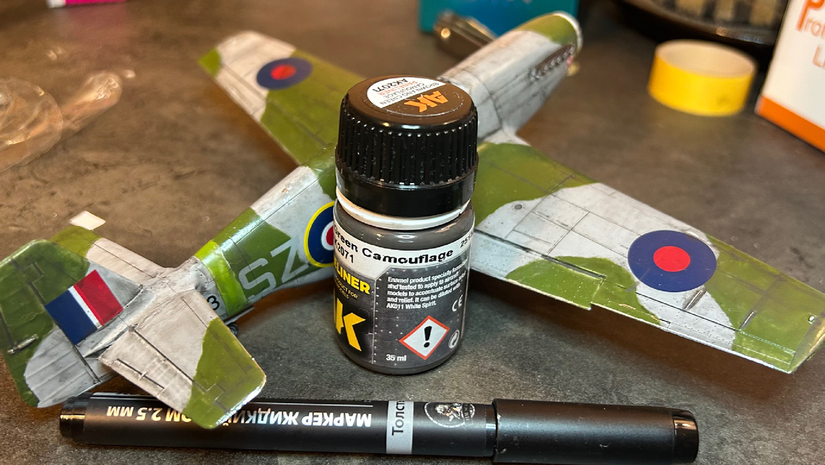 Из того, что немного обескуражило, это то что на зеленых полосах, линии панелайнера выглядят почти незаметными. Похоже AK попали в близкий тон Dark Green от Мига. Я попробовал оставлять более широкие тени на панелях, но эффект меня не в полной мере устраивает. Есть ощущение, что надо как-то потренировать достижение эффекта тонких линий на зеленом фоне.