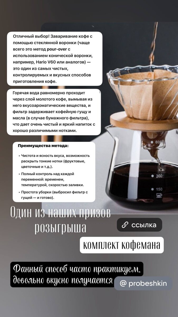 Вчера чуть-чуть 🤏 рассказали про один из призов розыгрыша - комплект кофемана и японский вариант заваривания кофе