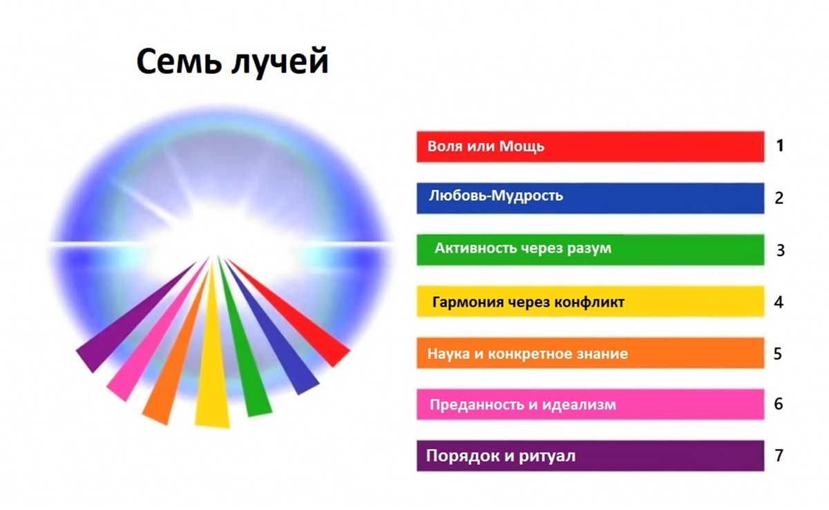 Теперь мы готовы рассмотреть методы работы с проекцией (шаг 3) в разрезе лучей. Важное замечание: рассматривая семь лучей и сопровождающие их Слова Силы, необходимо помнить, что мы имеем дело исключительно с аспектом Воли. Почему это так важно? По мере того как ученик повышает свой уровень, он переходит от контакта с лепестками Знания к лепесткам Единства или Любви, а затем, наконец, к лепесткам Жертвы или Воли. Таким образом, контакт с лепестками Воли предполагает гораздо более высокую степень выравнивания персоны с высшими планами, чем та, которая до сих пор выражалась «Странником по Пути». Ученик должен научиться пробуждать в себе божественный аспект, который до сих пор оставался относительно спокойным. Итак, контакт с лепестками Воли установлен. Здесь ученик пытается достичь 3-й Триады. Все, что ученик может почерпнуть из лепестков Воли, которые являются тенью Духовной Триады, искажается на ментальном плане, природой ума. Таким образом, чтобы продвинуться дальше по этому пути, предполагается, что создатель Антахкараны достиг высокой стадии духовного развития. Начинает формироваться связь между умом (47:4), лепестками Воли (47:1) и тем, что известно как Атмический принцип (45:1). Эта связь может быть едва заметной, но она присутствует. С эзотерической точки зрения это ощутимый факт, и он приводит к контактам с высшими планами.