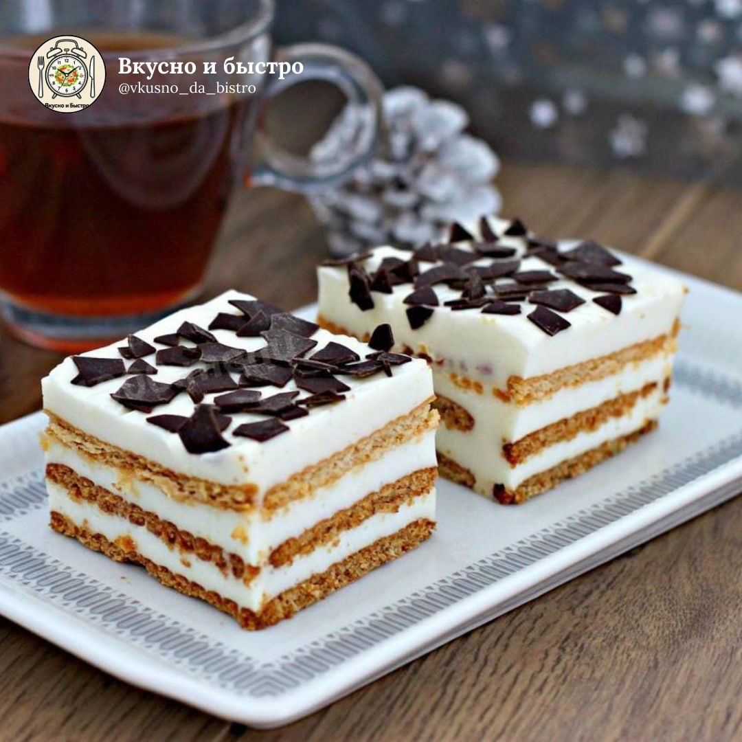 #десерт #40мин 🕒Время приготовления: ~40 минут Порции: 6–8 шт. Сложность: легко 🧾 Ингредиенты: 🟠Печенье ("К чаю") — 500–600 г 🟠Молоко — 200 мл 🟠Творог — 500 г 🟠Масло сливочное — 100 г 🟠Сахар — 150 г 🟠Сметана — 50 г 🟠Шоколад — для посыпки 🟠Банан — 2 шт 🍴Приготовление: 1. Приготовьте крем: взбейте творог с мягким сливочным маслом, сахаром и сметаной до густой однородной массы. 2. Каждое печенье обмакните в молоко и выложите в разъёмную форму первым слоем. 3. Сверху распределите слой крема и кружочки бананов. Повторите слои: печенье, крем, бананы по желанию. 4. Завершите торт слоем крема и посыпьте крошкой из печенья и тертым шоколадом. 5. Охладите перед подачей для лучшего застывания. Вкусно и Быстро | Мы в Мах 📲