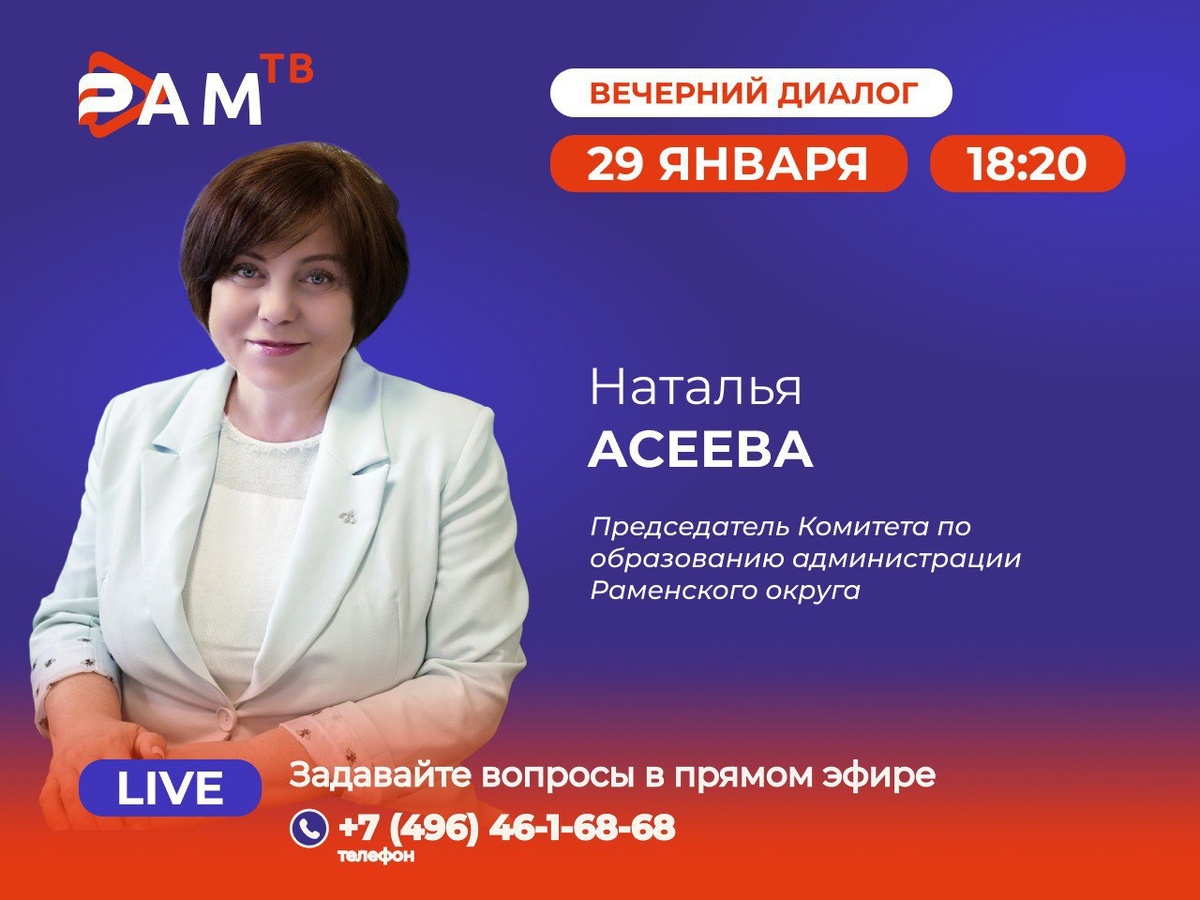 Уже сегодня в программе «Вечерний диалог» – председатель Комитета по образованию администрации Раменского м