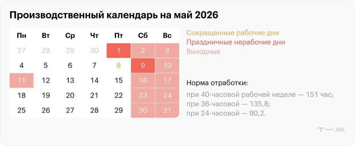 Производственный календарь на май 2026 года: как работаем и отдыхаем