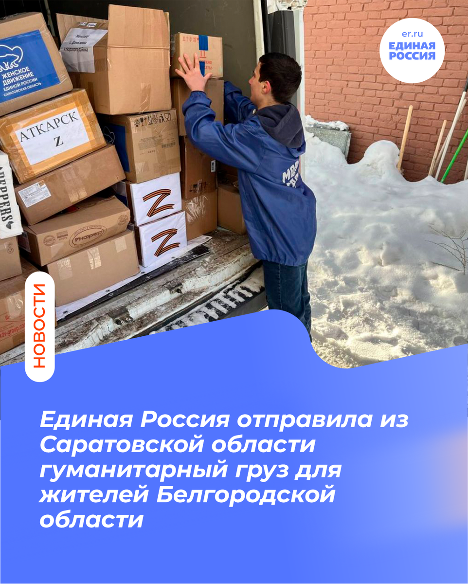 💬«Сегодня вся Саратовская область работает как единый пункт сбора гуманитарных конвоев. Благодаря слаженной работе местных и первичных отделений Единой России для белгородцев удалось собрать все самое необходимое: от продуктов длительного хранения и медикаментов до средств гигиены и детского питания.