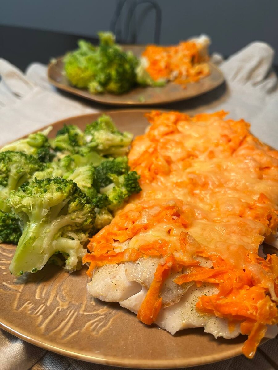 Эти рецепты выручат в любой день. Все блюда готовятся меньше чем за 15 минут — из простых продуктов, без сложных шагов. Подборка подходит для завтраков, обедов, ужинов и перекусов, и будет регулярно пополняться. Заберите подборку в боте и готовьте с удовольствием 🐠🐠🐠 Никогда не думала, что с таким восторгом буду есть белую рыбу. Да и вообще рыбу — особенно в сочетании с брокколи. Получилось очень вкусно и просто. Нам понадобится: • филе белой рыбы — 800 г (можно заменить на красную, если любите) • морковь — 500 г • сметана — 3 ст. ложки • сыр — 100 г • соль, перец — по вкусу Для гарнира: • брокколи (у меня была замороженная) — 400 г • чеснок — 2 зубчика Как готовить: • Рыбу нарезаем порционными кусочками, солим, перчим. • Морковь натираем, смешиваем со сметаной. • Выкладываем рыбу в форму (у меня 36×26), сверху распределяем морковно-сметанную смесь. • Посыпаем тёртым сыром. • Отправляем в разогретую до 200° духовку на 20 минут. Пока запекается рыба, готовим брокколи: • В кипящую во