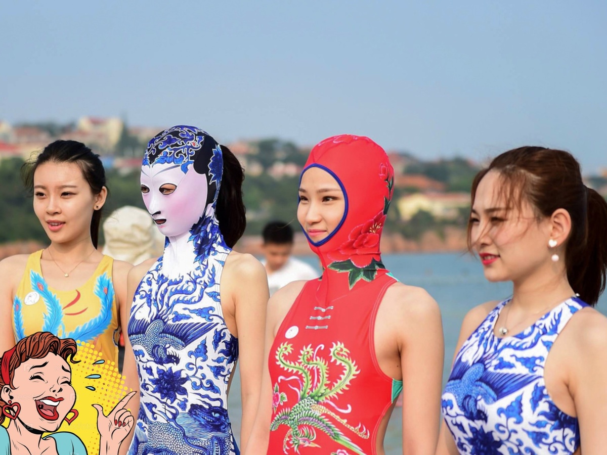 Поэтому местные девушки на пляж надевают не бикини, а костюмы ниндзя — с длинными рукавами, шляпами с полями и перчатками. Солнце — главный враг красоты.
