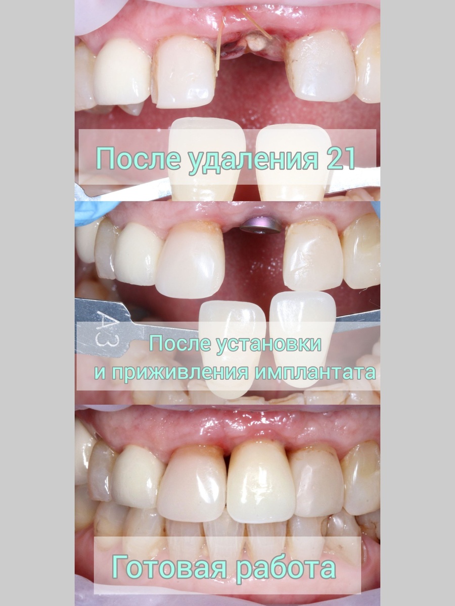 В линии улыбки особенно важны эстетика и естественность, а потому коронка должна: 👉 Идеально соответствовать по цвету и прозрачности соседним зубам; 👉 Иметь естественную анатомическую форму; 👉 создавать красивый контур в районе десны. Доктор совместно с пациентом остановились на варианте из диоксида циркония. Циркониевые коронки: 🦷 Обладают высокой прочностью; 🦷 Максимально эстетичны (матовый эффект, схожий с натуральной эмалью); 🦷биосовместимы; 🦷долговечны. Предварительно была проведена хирургическая часть: удален разрушенный, не подлежащий восстановлению 21 зуб. По истечении периода заживления была произведена установка имплантата Astra. После приживления имплантата было проведено сканирование. В лаборатории изготовили индивидуальный абатмент. Абатмент - это связующее звено между имплантом и коронкой. И затем была произведена фиксация коронки. В данном клиническом случае была выбрана винтовая фиксация. Коронка на импланте для переднего зуба — это сложная, но идеаль